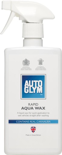 Produkt „Rapid Aqua Wax” jest najbardziej strzeżoną tajemnicą w pielęgnacji samochodów. Nasz wosk na bazie wosku carnauba może być stosowany bezpośrednio na mokry pojazd od razu po myciu, w krótkim czasie dając tobie przepiękne wykończenie twardego wosku. Może być stosowany do ochrony wszystkich powierzchni zewnętrznych m. in. lakieru, plastiku, gumy i szkła pozostawiając samochód, z którego będziesz niezmiernie dumny. W 2015 roku zwycięzca nagrody „Best Buy” w teście grupowym mokrych wosków Auto Expressu. Zawiera prawdziwy wosk carnauba.