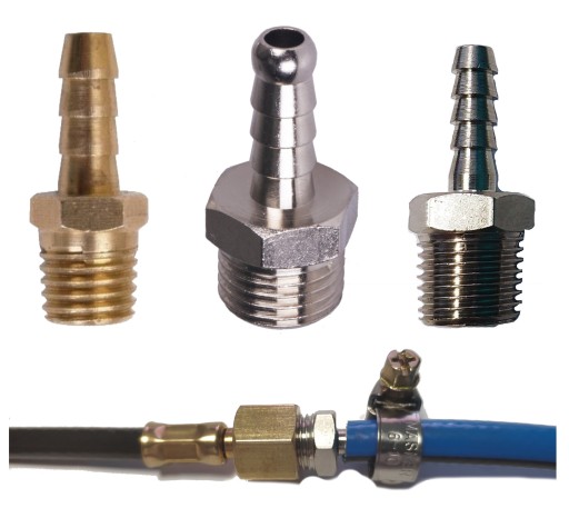 Uchwyt TIG zakończony jest nakrętką, którą w niektórych spawarkach można wkręcić bezpośrednio w spawarkę ( gaz plynie wtedy bezpośrednio ze spawarki). Jeśli twoja spawarka nie ma takiego wyjścia, w zestawie znajdziesz złaczkę, którą połączysz przewód gazowy z wężem gazu, a ten wepniesz do butli z gazem.