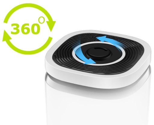 Nawilżacz posiada obrotową dyszę 360 stopni dzięki czemu dowolnie można regulować kierunek wylatującej pary tak by np. nie leciała na meble lub w kąt pomieszczenia.