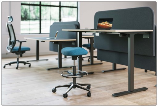 Jednym z rozwiązań umożliwiających taką "ergonomiczną mobilność" są biurka regulowane w wysokości - można podnieść blat biurka i popracować na stojąco lub na wysokim stołku, a podczas prowadzenia rozmowy na spotkaniu online można spacerować po pokoju jednocześnie mając dostęp do całej swojej przestrzeni roboczej.