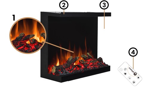 - Realistyczny płomień w 3 kolorach: pomarańczowym, pomarańczowo-niebieskim, żółtym