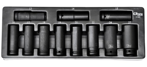 Wkład zawiera zestaw sześciokątnych nasadek udarowych 1/2" 11 elementów. Nasadki zostały wykonane ze stali chromowo- molibdenowej, dzięki czemu są bardzo wytrzymałe.