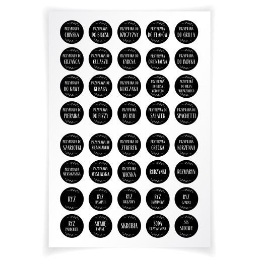 Naklejki na przyprawy 200szt arkusze