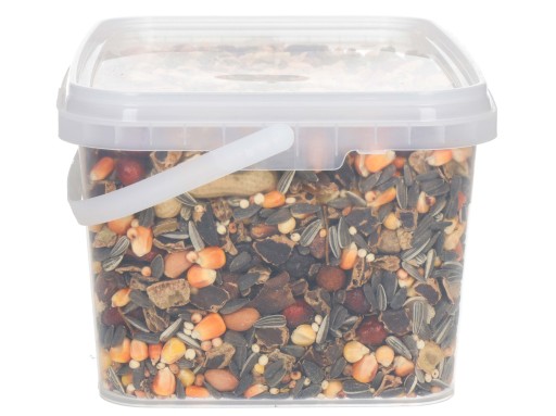 - Skład: kukurydza, nasiona słonecznika czarne, chleb świętojański suszony, sorgo czerwone, nasiona słonecznika paskowane, sorgo białe, owoc dzikiej róży, orzech ziemny, orzech laskowy