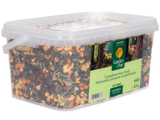 Mieszanka paszowa pełnoporcjowa uzupełniająca to idealny sposób na dokarmianie wiewiórek przez 4 pory roku, głównie w okresie ograniczonej dostępności pokarmu. Dzięki dużemu opakowaniu pokarm starczy na dłużej. Zamykany pojemnik zapobiega wysychaniu karmy.