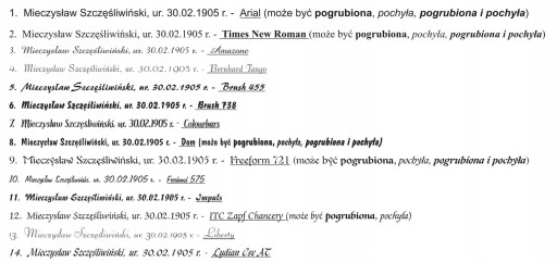 Czcionki do wyboru: