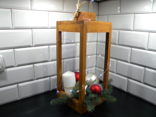 Drewniany lampion wykonany ręcznie z najwyższą starannością.