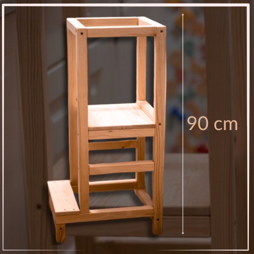 - Stabilna platforma zapewniająca ochronę przed upadkami i kontuzjami. Dzieci mogą swobodnie stać na podestach, uczestnicząc w czynnościach kuchennych.