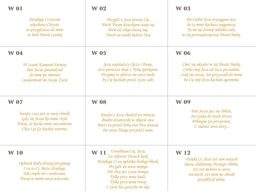 - Tekst na okładkę np. Zaproszenie na Komunie Świętą: