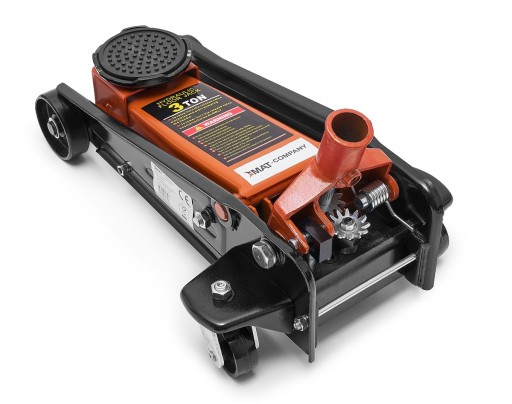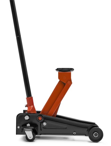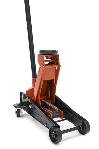 - Praktyczny podnośnik samochodowy, wyposażony w koła jezdne, dzięki czemu łatwo się go przemieszcza.