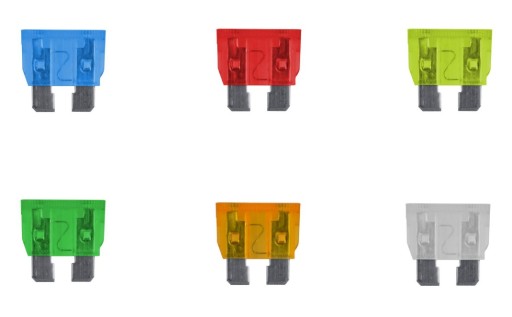 - 6 rodzajów bezpieczników o natężeniu prądu od 5 do 30A