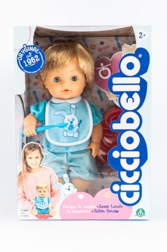 Cicciobello Je śniadanko to lalka włoskiej marki Cicciobello. Lalka ma 30 centymetrów i umożliwia wspaniałą zabawę. Lalka posiada z tyłu przycisk, który pozwala aktywować ruch rączki, co symuluje samodzielne jedzenie. Do zestawu dołączony jest talerzyk oraz miseczka. Lalka dodatkowo ubrana jest w czapeczkę oraz śliniaczek. Zabawa w dom, włączając w to odgrywanie różnego rodzaju ról jest nie tylko sposobem na nudę - ma ona dla dzieci ogromne znaczenie w kontekście ich rozwoju. Rozwija kreatywność dzięki odtwarzaniu różnego rodzaju scenariuszy napędzanych dziecięcą wyobraźnią. Dzieci od najmłodszych lat przyglądają się zachowaniom dorosłych i starają się je naśladować. Dzięki temu przez obserwację nabywają wiedzę, która pomaga zrozumieć zasady w danej grupie społecznej. Zabawa z lalkami i troskliwa opieka nad nimi pozwala na rozwój empatii. Zabawa z Je śniadanko może być świetną okazją do poruszenia z dzieckiem tematu żywienia, chociażby istnienia owoców czy warzyw, a także ich dużego znaczenia w diecie. Cicciobello pięknie być rodzicem!