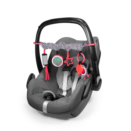 Zawieszka kryje w sobie wiele wspaniałych niespodzianek, zapewniając dziecku radosną zabawę na długi czas. Wygodne zaczepy pozwalające zamontować zabawkę w zależności od potrzeb (wózek/łóżeczko/fotelik).