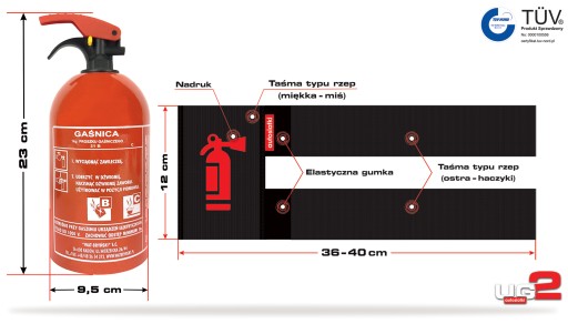 Przed zakupem warto upewnić się czy rzep trzyma się tapicerki w Państwa bagażniku. Jeśli rzep z np. kurtki czy torby przyczepia się do wykładziny - opaska gaśnicy zachowa się tak samo.