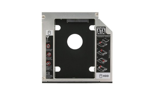 Aluminiowa, fabrycznie nowa kieszeń na dysk HDD 2.5 cala montowana w miejsce napędu optycznego komputerów przenośnych. Kieszeń umożliwia bezinwazyjną i szybką instalację drugiego dysku twardego w laptopie w miejscu napędu optycznego CD/DVD. Jest to doskonałe rozwiązanie dla użytkowników komputerów przenośnych którzy potrzebują dodatkowego dysku twardego w swoim laptopie. Technologia podłączenia typu Plug and Play umożliwia zainstalowanie kieszeni bez użycia sterowników i dodatkowego oprogramowania. Dodatkową zaletą jest możliwość bootowania z dysku zamontowaniego w kieszeni.