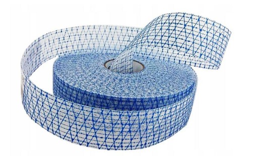 Taśma FIBAFUSE MAX wykorzystywana jest do spoinowania połączeń płyt G-K.Niebieska warstwa wzmacniająca ma trójkierunkową konstrukcję, która zapewnia odporność na pękanie w wielu kierunkach i zapobiega przypadkowemu rozdarciu taśmy na wewnętrznych rogach. Masa idealnie przenika taśmę, dzięki czemu połączenie jest bardzo mocne.FibaFuse MAX może być stosowany w automatycznych narzędziach do taśmowania lub ręcznie na złączach fabrycznych i na końcach styków, w narożnikach wewnętrznych oraz do łatania i napraw.Nie tworzy pęcherzy i bąbelków.CECHY PRODUKTU:- 67% mocniejsza od innych taśm fizelinowych- taśma posiada otwartą konstrukcją włókien, która pozwala mieszance przejść przez taśmę, eliminując pęcherzyki i pęcherze- będzie działać z każdym rodzajem mieszanki, ale zalecamy użycie gotowej mieszanki uniwersalnej- produkty FibaFuse są naturalnie odporne na pleśń- długość: 76m- szerokość: 52mm