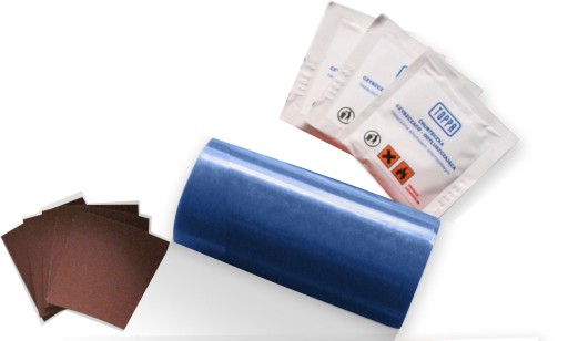 Doskonałym dodatkiem, który umożliwia zaklejanie dziur nawet w miejscach, gdzie zgrzewanie na ciepło nie dało by sobie rady, jest preparat gruntujący nasz klej. Wystarczy suchą powierzchnię przetrzeć specjalną chusteczką, najlepiej z góry na dół jednym pewnym ruchem. Na powierzchni pozostaje niewidoczna powłoka gruntująca, która zwiększa klejenie trudnych powierzchni.
