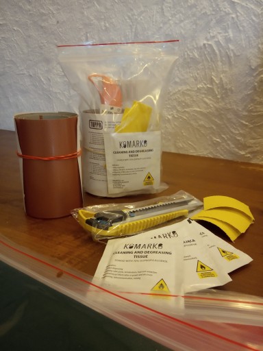 - to materiał plandekowy o długości 220 cm i szerokości 10 cm, pokryty jednostronnie wysokiej jakości, bardzo wytrzymałym klejem i zabezpieczony folią. Używa się go jak samoprzylepny plaster na rozdartą plandekę. Klej jest odporny na warunki atmosferyczne.
