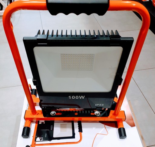 Lampa LED o mocy 100W, wyposażona w dwa gniazda 230v , dzięki czemu możemy wykorzystywać ją jako przedłużacz.