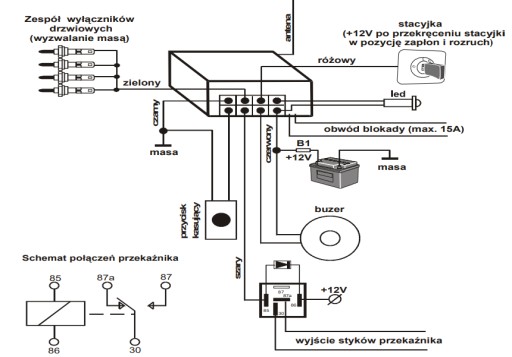 - Max prąd obciążenia blokady zapłonu 10 A.,
