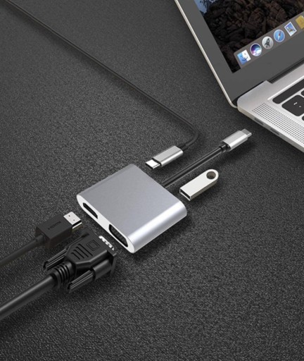 ADAPTER 4w1 USB-C 3.1 z złączami VGA / HDMI 4K / USB 3.0 / Power Delivery do 100W .