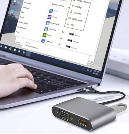 Poręczny adapter, idealny gdy często się przemieszczasz i potrzebujesz podłączyć laptop lub tablet do telewizora, monitora, bądź projektora. Oferuje wyświetlanie obrazu z portu HDMI / VGA dla urządzeń z wejściem USB typu C, który obsługuje przesyłanie obrazu.