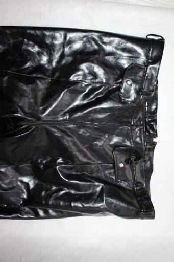 Lakierowane spodnie z butami w całości, zapinane na zamki,platforma- używane stan dosyć dobry- normalne ślady użytkowania. WYMIARY dł do obcasa- 120 cm, dł nogawki od kroku- 83 cm, pas- 110 cm, biodra- 118 cm, udo- 62 cm, dł wkładki- 30 cm, obcas- 15 cm, platforma-2,5 cm.
