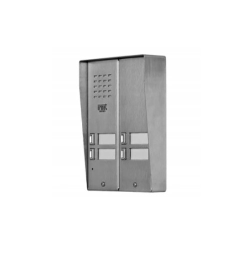 Panel wykonany jest z blachy nierdzewnej. Jego niewielkie wymiary sprawiają, iż doskonale nadaje się do montażu na wąskich słupkach ogrodzeniowych. Dodatkowe zabezpieczenie stanowi śruba patentowa mocująca płytę czołową. Panel posiada wbudowany moduł rozmówny oraz 4 przyciski wywołania. Dodatkowo panel posiada podświetlane okienka informacyjne.
