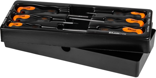 Zestaw 6 sztuk wkrętaków umieszczonych we wkładzie do wózka warsztatowego typu A.