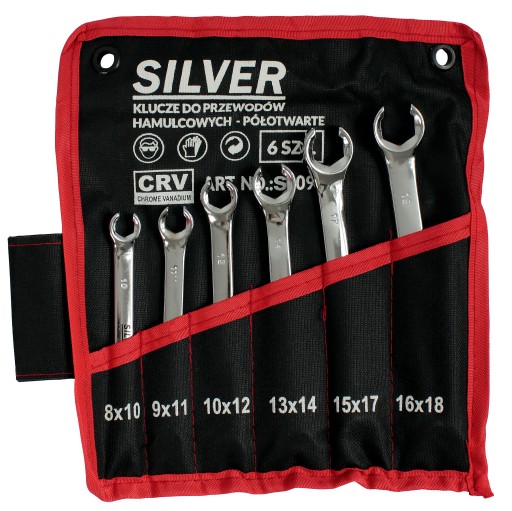 ZESTAW KLUCZY PÓŁOTWARTYCH DO PRZEWODÓW HAMULCOWYCH 6szt. 8-18