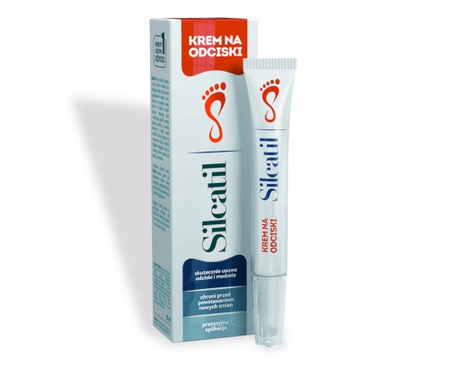 Silcatil krem na odciski zmniejsza grubość warstwy rogowej naskórka, nawilża i łagodzi podrażnienia, a także wspiera regenerację bariery ochronnej skóry.