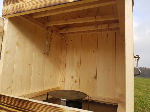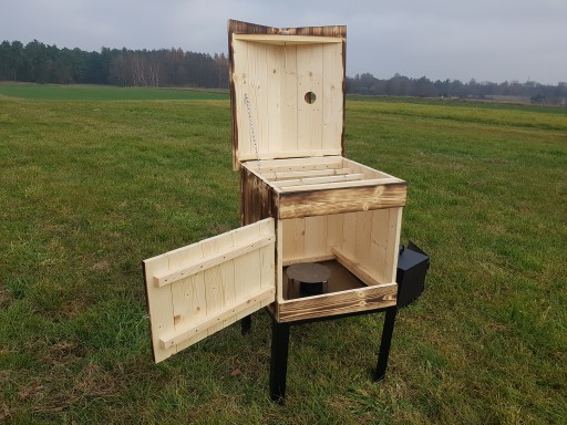 - Komora wędzarnicza drewniana o wysokości 50 cm szerokości 50 na 50 cm. Wykonana z deski ŚWIERKOWEJ o grubości 18mm łączonej na pióro-wpust