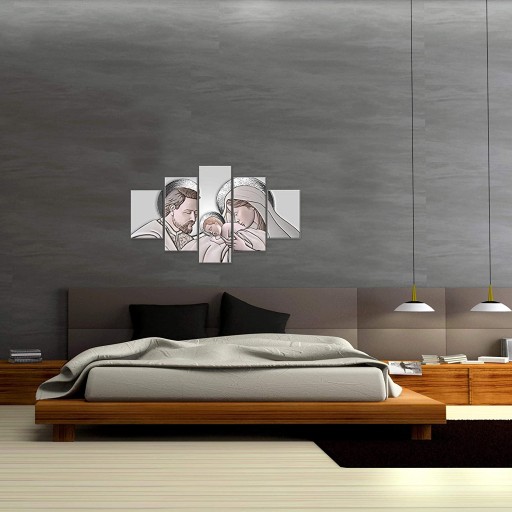 5-częściowy drewniany obraz przedstawiający Świętą Rodzinę, 83 x 145 cm
