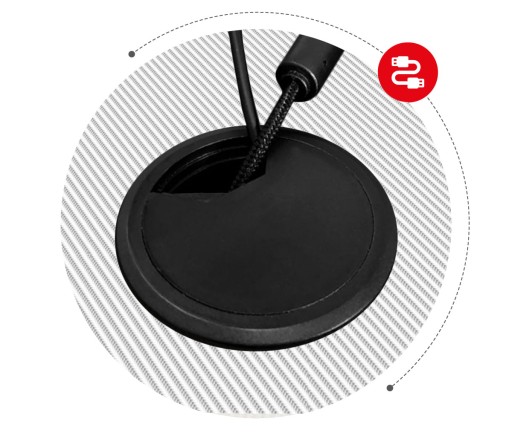 Biurko posiada centralnie położony wlot na przewody, dzięki któremu wygodnie i sprawnie zorganizujesz wszystkie podłączenia swojego sprzętu.