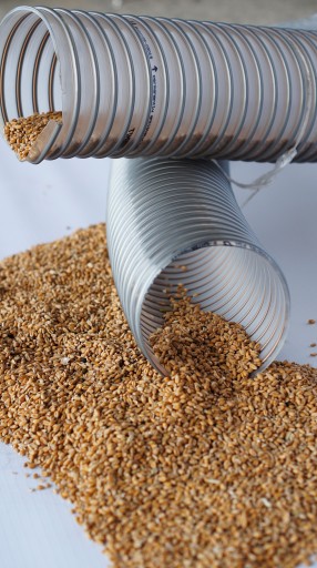 Przewody elastyczne do dmuchaw do zboża, węże ssawno tłoczne, transparentne, trudnościeralne, trudno zapalne do podajników pneumatycznych, śrutowników i transportu grawitacyjnego zboża, kukurydzy, żyta, jęczmienia, rzepaku, pszenicy i materiałów sypkich. Przewody ssawne odporne na ścieranie z powodzeniem stosowane przez producentów maszyn rolniczych, jako przewody trudnościeralne na pierwszy montaż. Węże elastyczne odporne na ścieranie do przenośników pneumatycznych, dmuchaw do zboża, siewników, podajników peletu. Odprowadzenie ładunków statycznych poprzez uziemienie spirali.