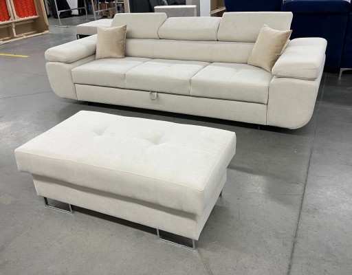 Nowoczesny zestaw wypoczynkowy składający się z funkcjonalnej sofy z funkcją spania, wygodnego fotela i otwieranej pufy. 4 stopniowa regulacja zagłówków. Funkcja spania, która zawsze się przyda i pojemnik na pościel. Wykonany z niezwykłą dbałością o szczegóły. Design, który przykuwa uwagę od pierwszego spojrzenia. Komfort użytkowaniu dzięki technologii sprężyn falistych oraz wysokoelastycznym piankom. Wytrzymały stelaż to połączenie drewna i płyty wiórowej.