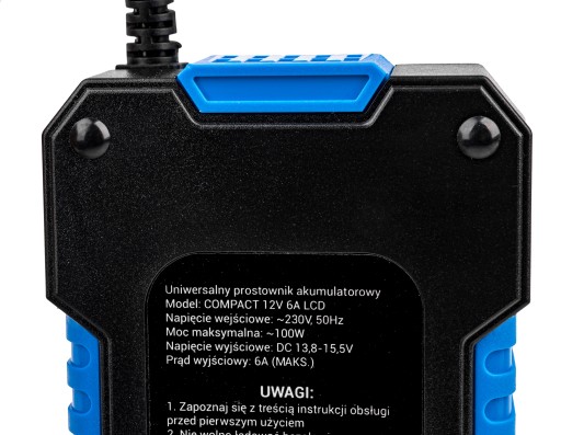Urządzenie jest sterowane mikroprocesorem - po pełnym naładowaniu automatycznie wyłącza się, utrzymując akumulator w gotowości.