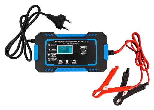 Wysokiej klasy prostownik automatyczny firmy Volt Polska do ładowania akumulatorów (samochodów, motocykli, pojazdów rolniczych lub łodzi ) o napięciu 12 V.