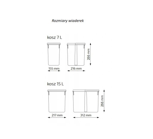 - 2szt. kosza o pojemności 15L w kolorze szarym