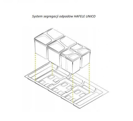 Sortownik na odpady systemu UNICO niemieckiej firmy Hafele, przeznaczony do szafek z szufladą, idealny pod zlewozmywak.