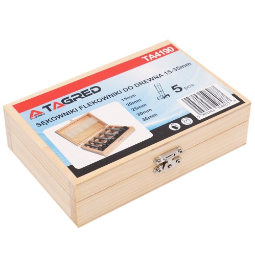Frezy do drewna przeznaczone do precyzyjnego wycinania bez szarpania krawędzi otworów, usuwania sęków i kołków. Wiertła wykonano z najwyższej jakości stali węglowej. 5 sztuk wierteł puszkowych w rozmiarach 15-35 mm do wiercenia w dowolnym kierunku zapewnia wydajną pracę i wysoką jakość cięcia otworu i jego krawędzi.