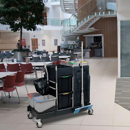 Kiedy sprzątasz więcej pomieszczeń, np. klasy w szkole, pokoje biurowe w firmie, gabinety lekarskie w przychodni, sale chorych w szpitalach, hale dworcowe, sklepy wielkopowierzchniowe - na pewno pomocny będzie wózek serwisowy serii SM 1705.