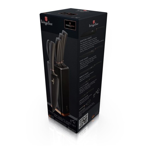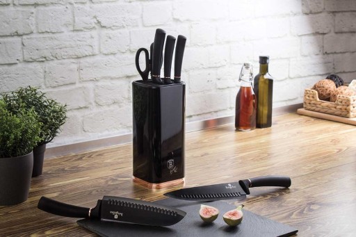 Zestaw noży na stojaku 6 elementów firmy BERLINGER HAUS z serii Black Rose Collectione.