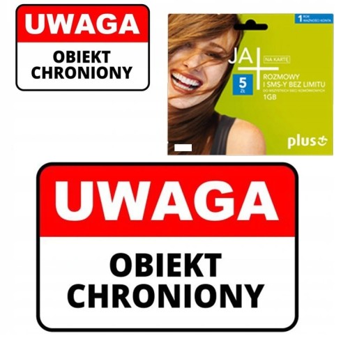 - Naklejka z napisem: "UWAGA OBIEKT CHRONIONY" o wymiarach 15cmx10cm