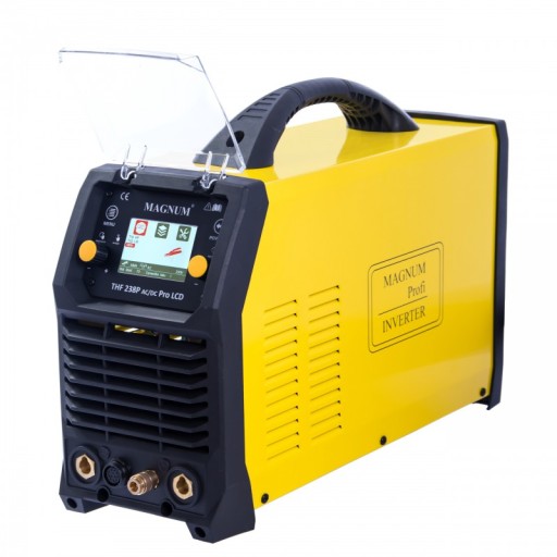 Urządzenie THF238 PRO LCD marki MAGNUM jest profesjonalną, lekką spawarką inwertorową przeznaczoną do spawania metodą TIG HF (z bezstykowym zajarzaniem łuku spawalniczego) prądem przemiennym AC oraz stałym DC. THF 238 zapewnia doskonałą wydajność w spawaniu aluminium i jego stopów, stali niestopowej, niskostopowej, wysokostopowej, tytanu oraz innych spawalnych metali i stopów. Urządzeniem można również spawać metodą MMA z wykorzystaniem topliwych elektrod otulonych.