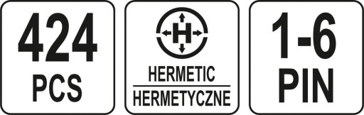 Zestaw 424 złączek hermetycznych w 6 rozmiarach pasujących do najbardziej popularnych średnic przewodów elektrycznych. Stosowane w branży motoryzacyjnej, m.in. do czujników i urządzeń w samochodach. Zapewniają bardzo dobrą izolację i szczelność.
