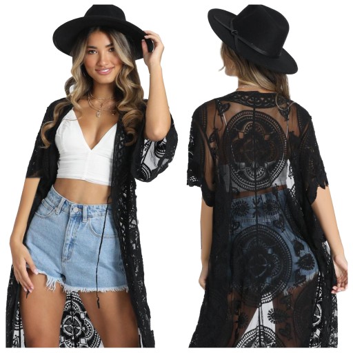 CZARNE PAREO KORONKA PLAŻOWA NARZUTKA LETNIA BOHO