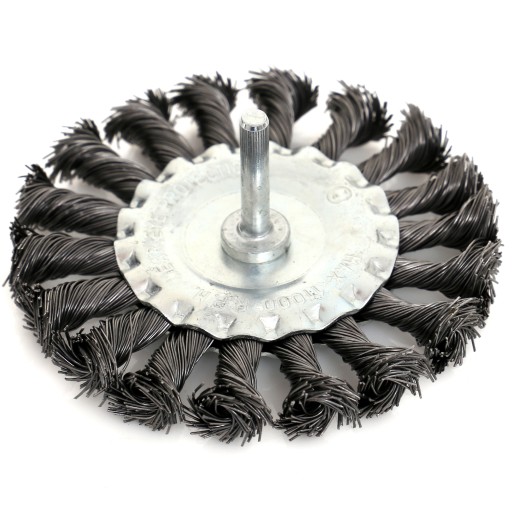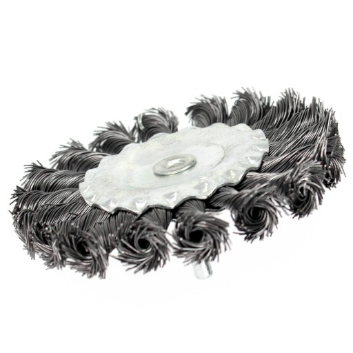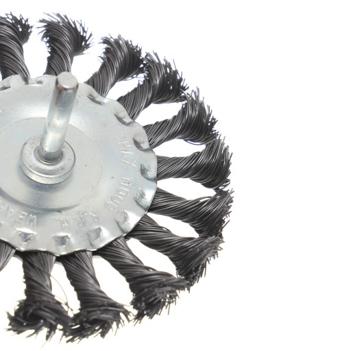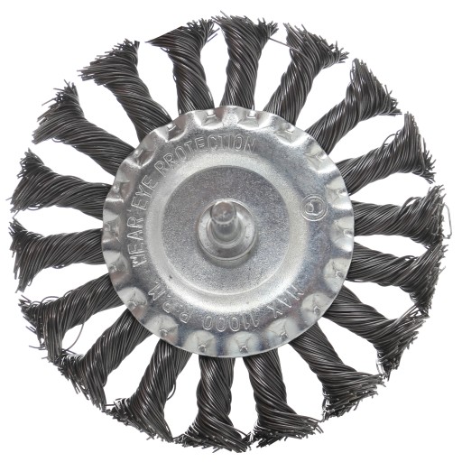 SZCZOTKA TARCZOWA DRUT SKRĘCANY 100mm Z TRZPIENIEM M6