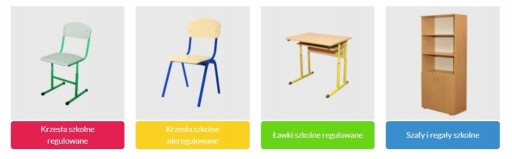 Oferta mebli szkolnych zawiera w sobie regulowane krzesła i ławki szkolne które rosną razem z uczniami, pojemne regały i komplety mebli oraz wyposażenie dla nauczycieli – biurka oraz krzesła. Dzięki temu Mextra School to miejsce, w którym możecie Państwo dokonać kompleksowego wyposażenia placówki, dostępnego od ręki!