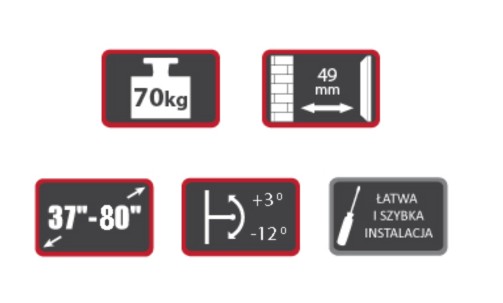 - Uchwyt przeznaczony dla telewizora w rozmiarze 37'' - 80''